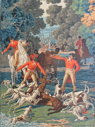Zur Tapete und deren Bedeutung gibt es den Blog: https://paris-blog.org/2021/10/21/die-einzigartige-historische-jagdtapete-la-chasse-de-compiegne-in-paris-und-im-wurttembergischen-datzingen/